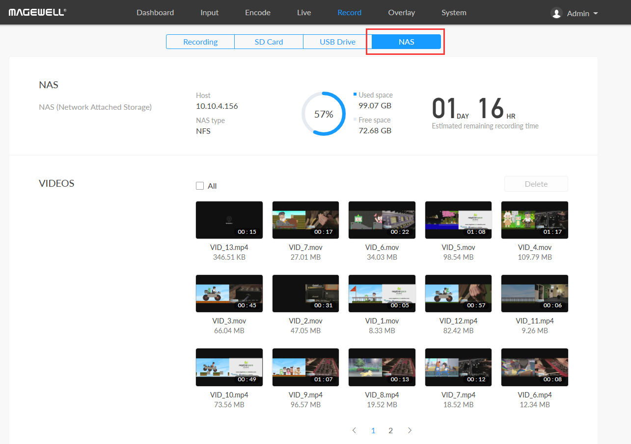 Network-attached storage (NAS) is a type of dedicated, shared file storage that allows multiple users and a diverse range of client devices to centrally store and retrieve data. Users on a local area network can access the shared storage via a standard Ethernet connection. This blog explains how to record live video to files on a NAS device with Magewell's Ultra Encode AIO advanced live media encoder.