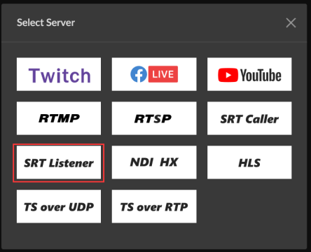 2. Click "Streaming Server" in the menu on the left, then click "Add Server". Select "SRT Listener".