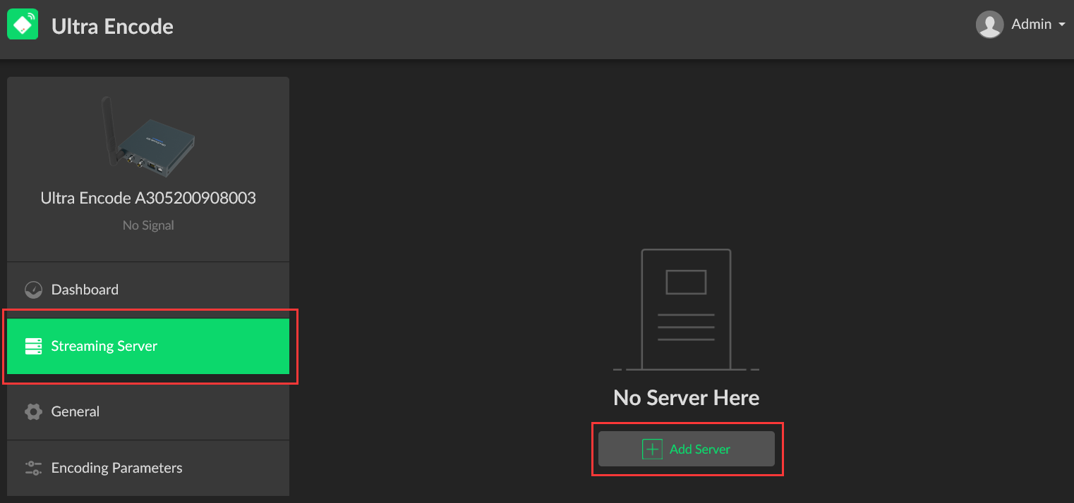 1. Log into the Web GUI of the Ultra Encode device. Select "Streaming Server" in the menu on the left, click "Add Server", and then select "SRT Caller".