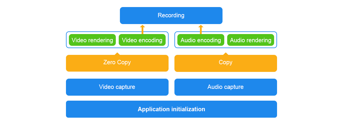 After capturing the data of a frame, move the data pointer to a queue. The encoding thread will obtain the data pointer from the queue and send it to the encoder for encoding. Since data is transferred as pointers, there is also no data copy in the process.
